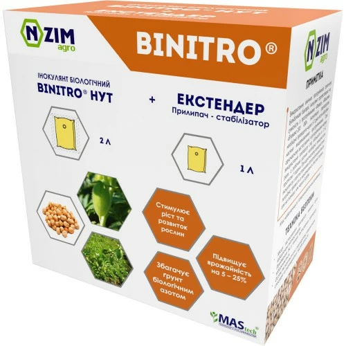 BiNitro Нут ENZIM Agro - препарат для предпосевной инокуляции семян нута. Жидкая концентрированная смесь на основе живых азотфиксирующих клубеньковых бактерий Mesorhizobium ciceri штамма LZ 23 и продуктов их метаболизма (фитогормоны, биофунгициды, антибиотики, аминокислоты, витамины). Высокоэффективный инокулянт для нута.