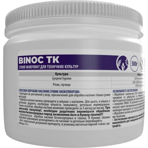 В состав комплекса BiNoc ТК входят отобранные микробиологические культуры - антагонисты возбудителей корневых гнилей и болезней стеблей и листьев, культуры-азотфиксаторы, фосфор и калий - мобилизаторы, фитогормоны, антибиотики, витамины, аминокислоты и регуляторы роста.