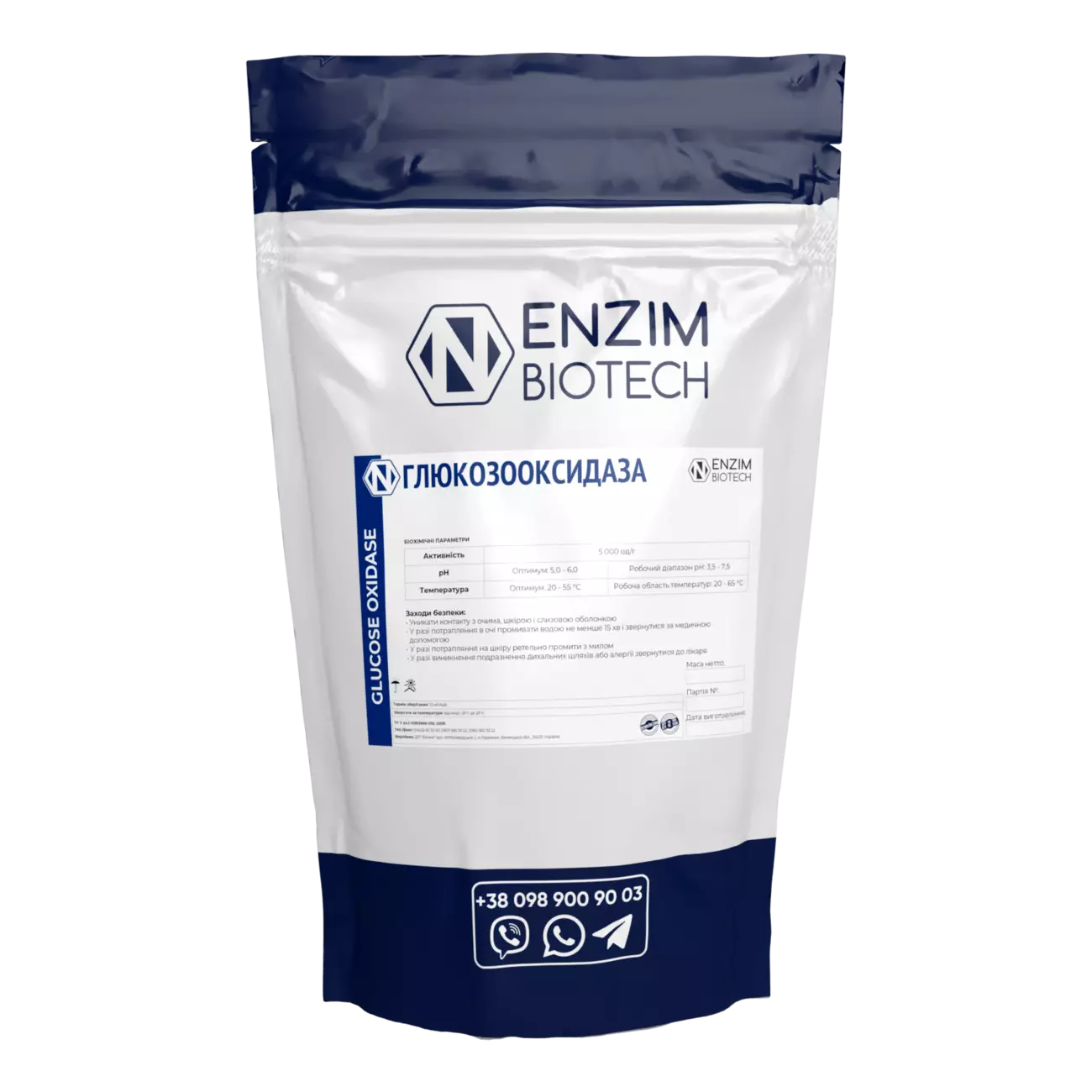 Глюкозооксидаза ENZIM - фермент для расщепления глюкозы, катализирует окисление глюкозы молекулярным кислородом с образованием перекиси водорода и глюконовой кислоты.